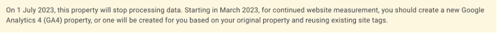 This of course isn’t news, we’ve known about the new platform for some time. Interestingly Google suggests to users that they should create a new GA4 property in March, otherwise one will be created, seemingly by Google based on your original property and reusing existing site tags.