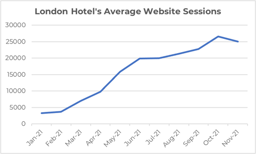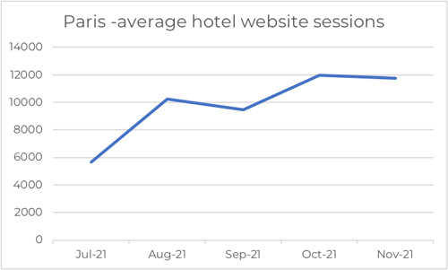Average hotel website sessions were also up 63% between September and October, although slightly down in November to just under 7,000 sessions.