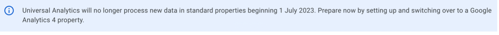 Universal Analytics properties will no longer process new hits after 1st July, 2023 and for Universal Analytics 360, this date is extended to 1st October, 2023.
