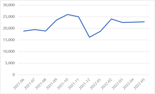 Website revenues recorded the biggest uptick in May, +7% on April and a massive +32% on the same month in 2021.