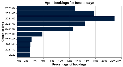 Making up for lost holiday time when restrictions are eased shows in a definite trend towards booking stays closer to check in times.