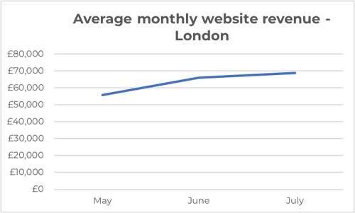 While London may still be missing international travellers and monthly website revenue still behind that of 2019, between May and July, average website revenue increased by 23%.